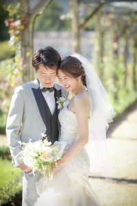 河津バガテル公園は、秋バラが見頃を迎える季節に多くのカップルを魅了します。この公園はフランス・パリのバガテル公園を再現したローズガーデンとして知られ、美しいバラが咲き誇る中でのフォトウェディングが人気です。秋には涼しい気候とともに、色とりどりの薔薇がロマンチックな雰囲気を演出し、特別な一日を彩ります。秋バラと共に撮影するフォトウェディングは、自然光が優しく降り注ぐ理想的な環境で行われます。河津バガテル公園の美しい景観と異国情緒あふれる建物は、まるで映画のワンシーンのような写真を残すことができます。